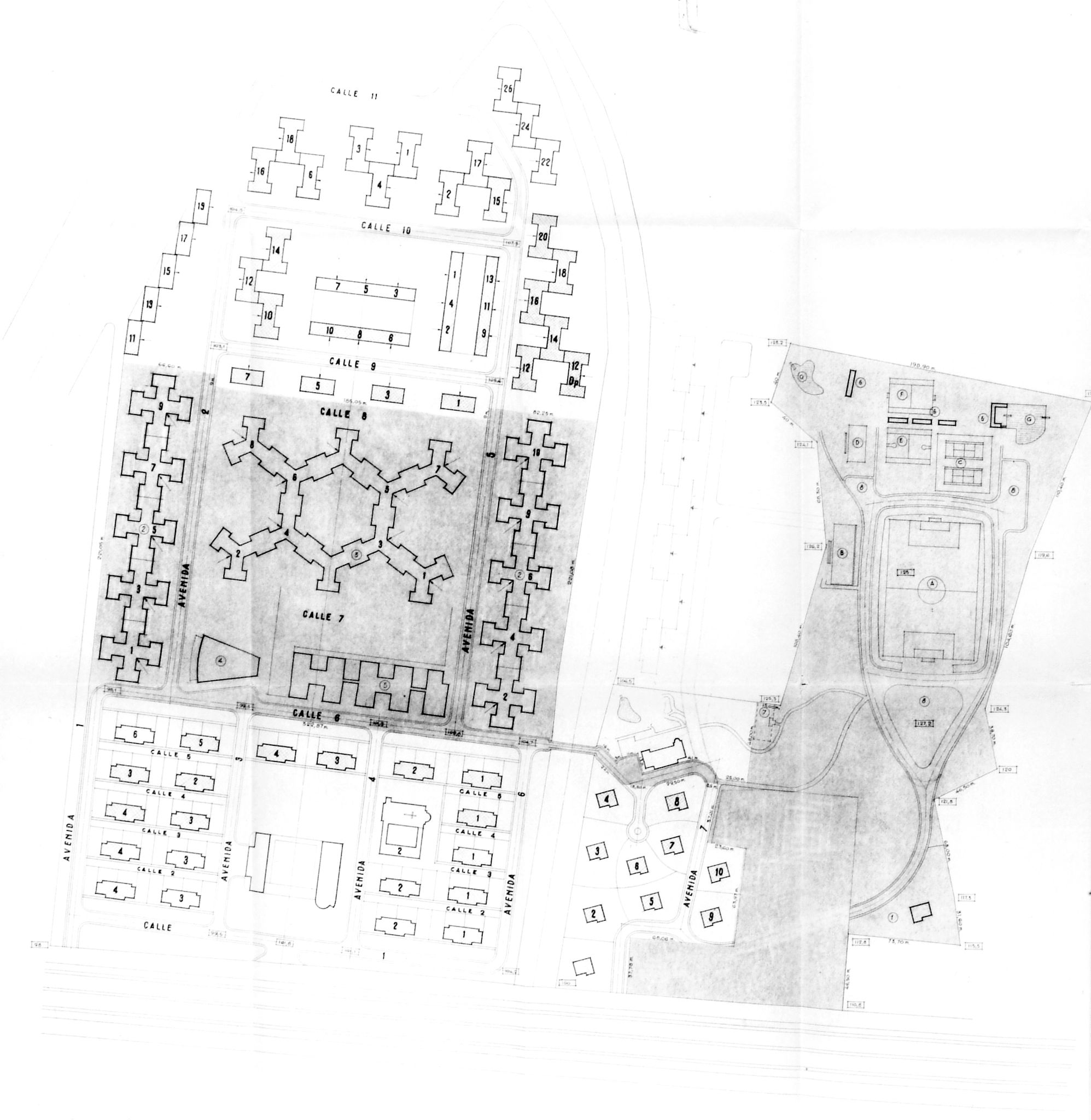 De hecho, y aunque la gramática ensayada mantiene importantes deudas con las arquitecturas contemporáneas del Instituto Nacional de la Vivienda -organismo bajo cuya protección se llevó a cabo el conjunto- y otras iniciativas oficiales análogas, los estándares de espacios públicos o de dotaciones parecen querer definir una ciudad poco menos que ideal para la época.